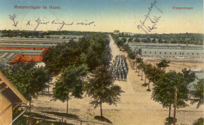 Links die Holzbaracken für die deutschen Soldaten, rechts die Wellblechhütten für die Kriegsgefangenen.
