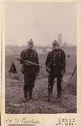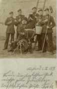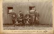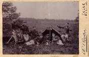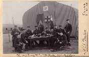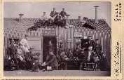Neben den frühen Lithografien fertigten die Fotografen vor Ort auch sogenannte Kabinettfotos an. Dabei handelte es sich zunächst um Gruppenaufnahmen, welche die Soldaten in ihrem Arbeitsumfeld zeigen, d.h. vor Zelten, Baracken oder auf der Heide.